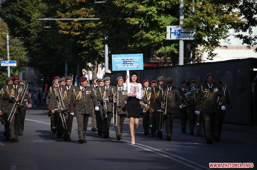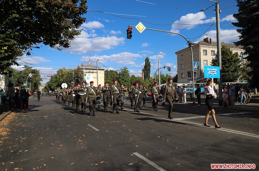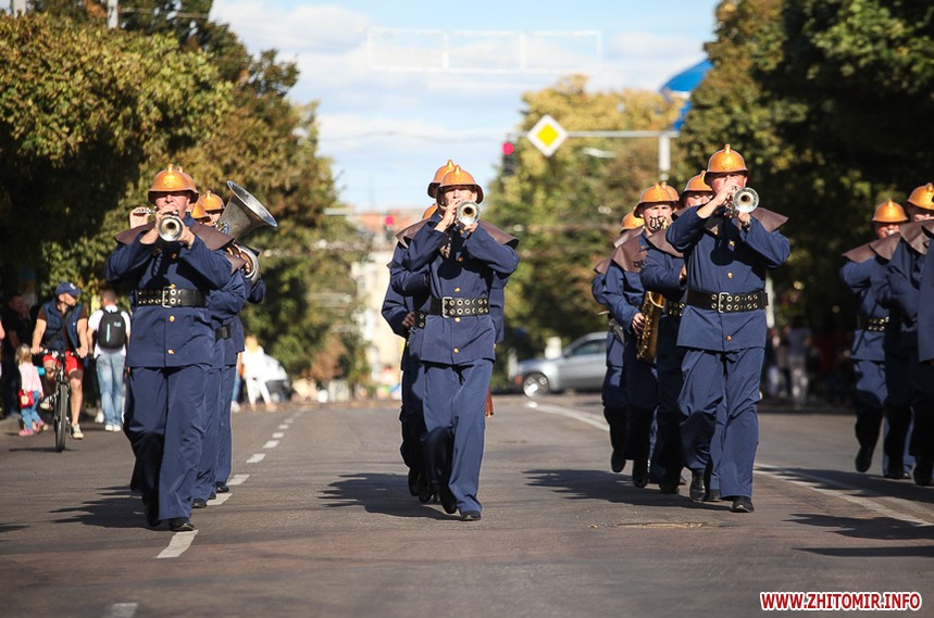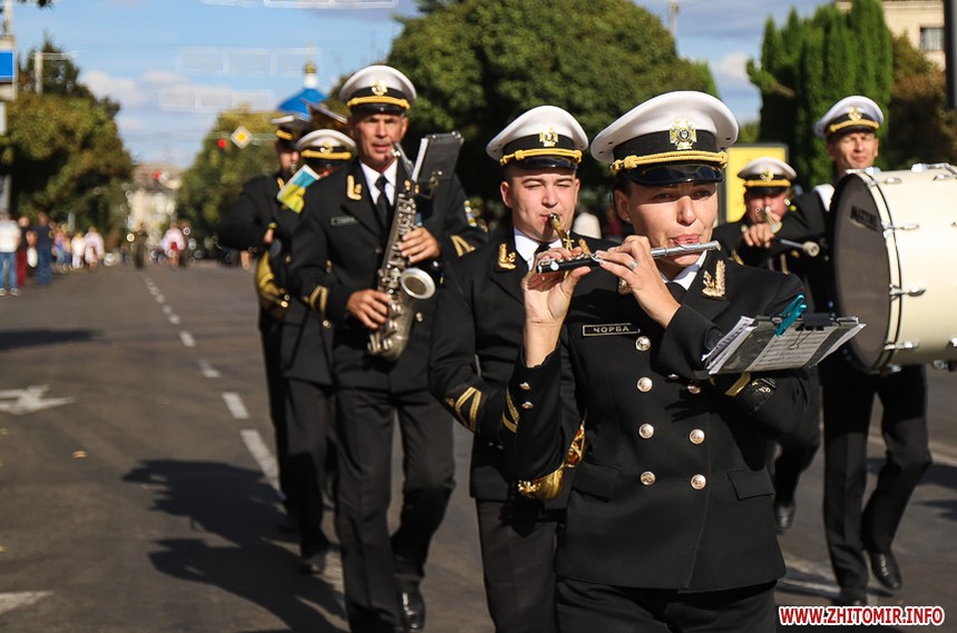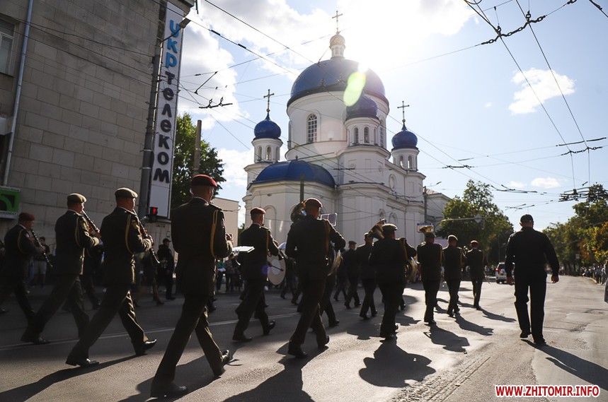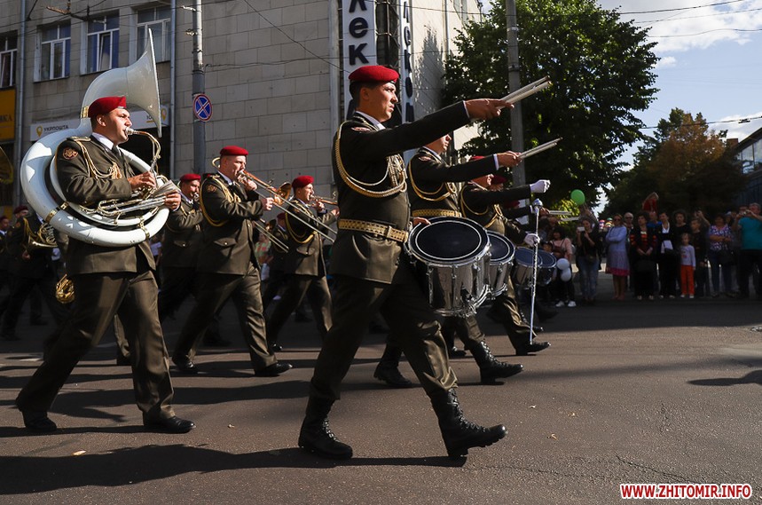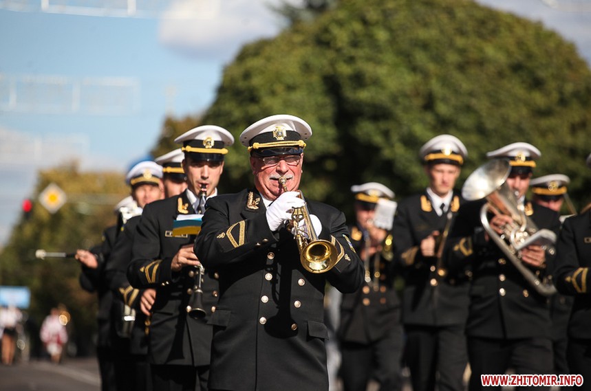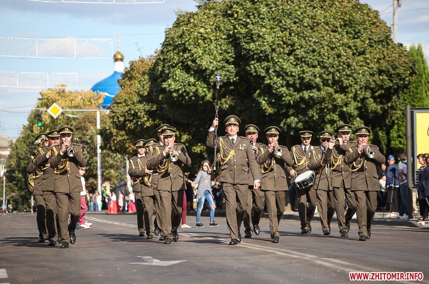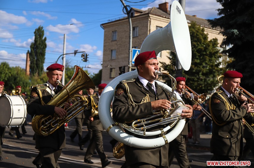 День міста Житомира в розпалі: 14 вересня житомирськими вулицями прокрокували учасники параду військових духових оркестрів ЗСУ. Шістнадцять оркестрів зі всієї України беруть участь у П’ятому фестивалі військових оркестрів «Ми єдині!», який розпочався на Соборному майдані о 16.00 і завершиться о 20.00.