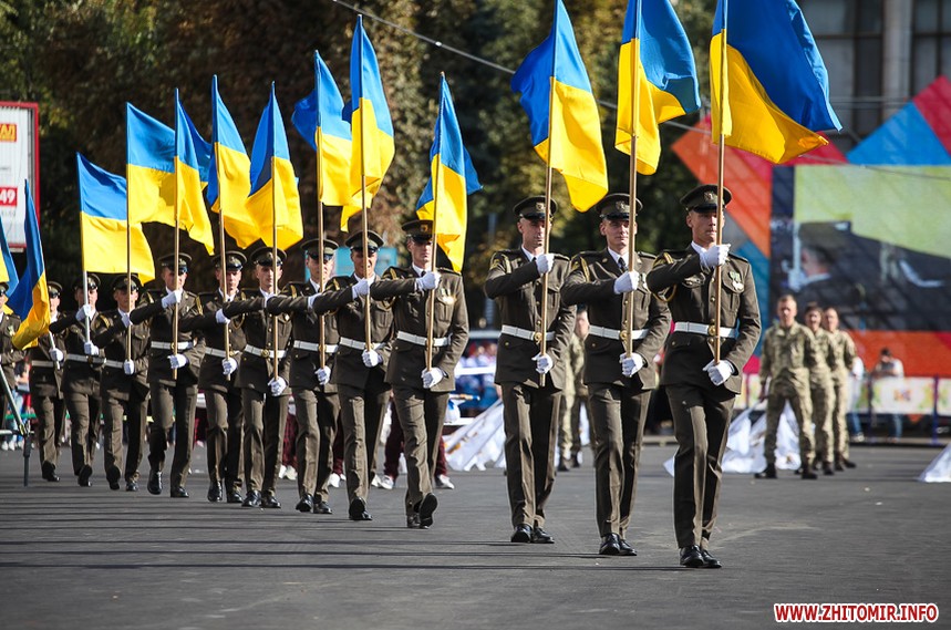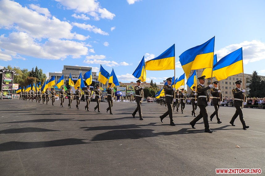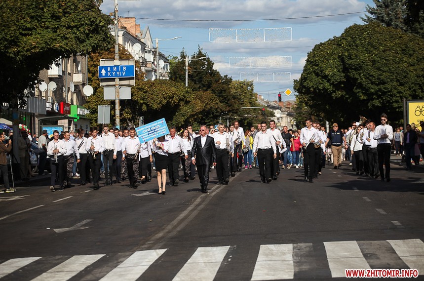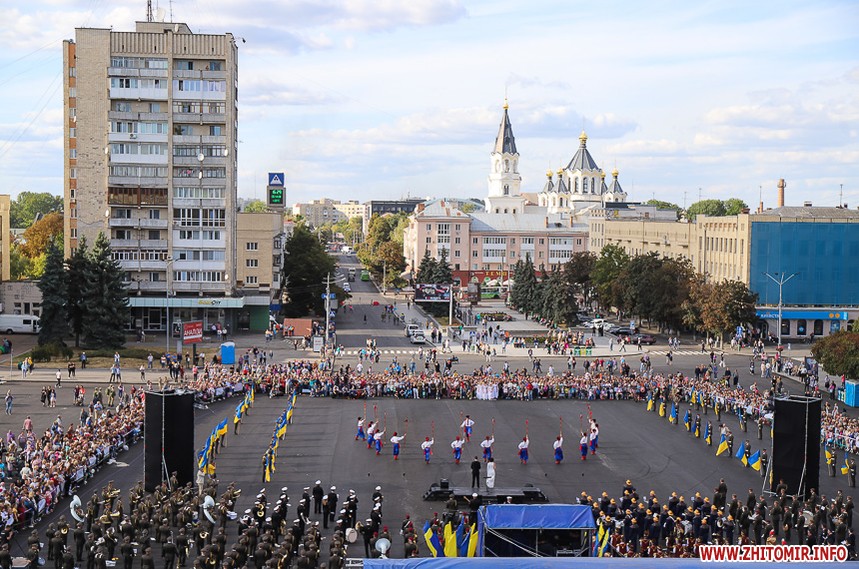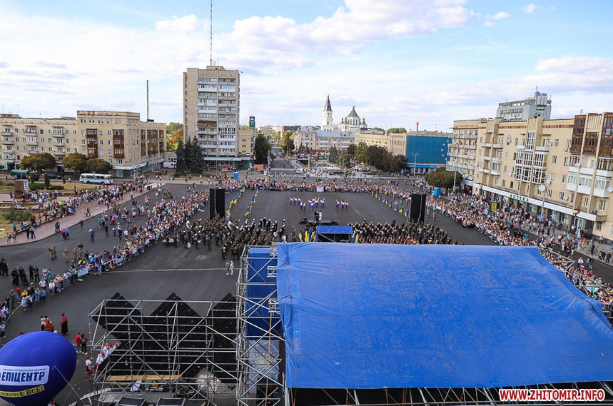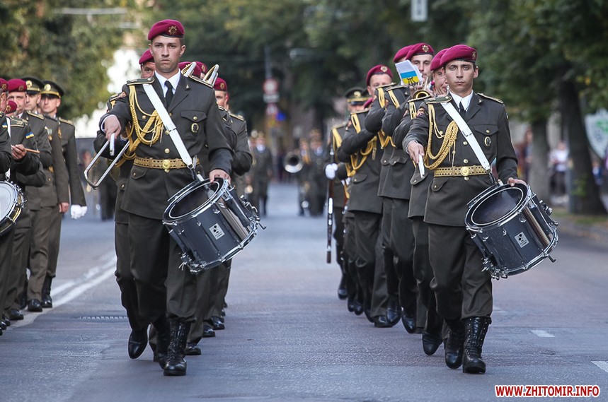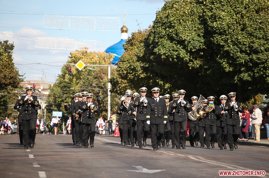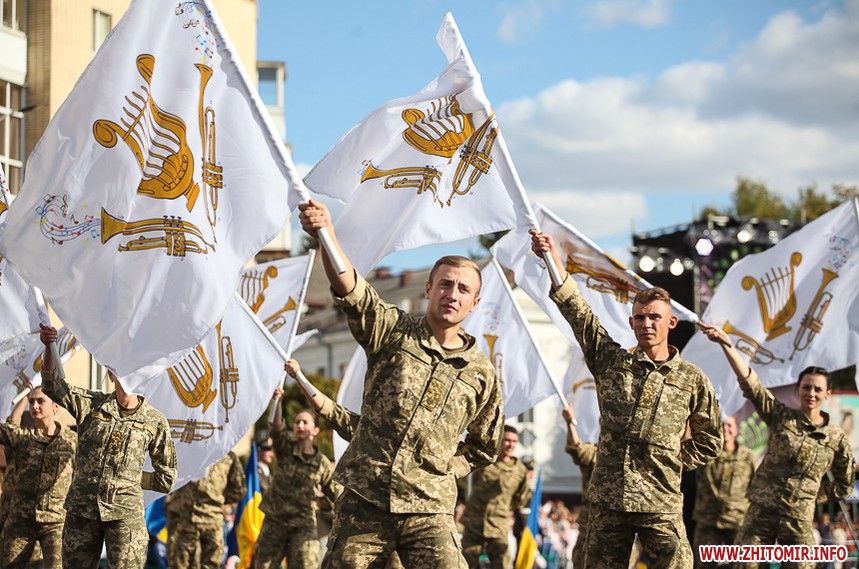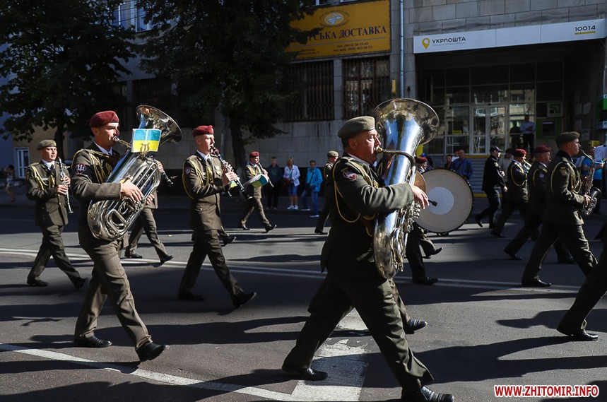 День міста Житомира в розпалі: 14 вересня житомирськими вулицями прокрокували учасники параду військових духових оркестрів ЗСУ. Шістнадцять оркестрів зі всієї України беруть участь у П’ятому фестивалі військових оркестрів «Ми єдині!», який розпочався на Соборному майдані о 16.00 і завершиться о 20.00.