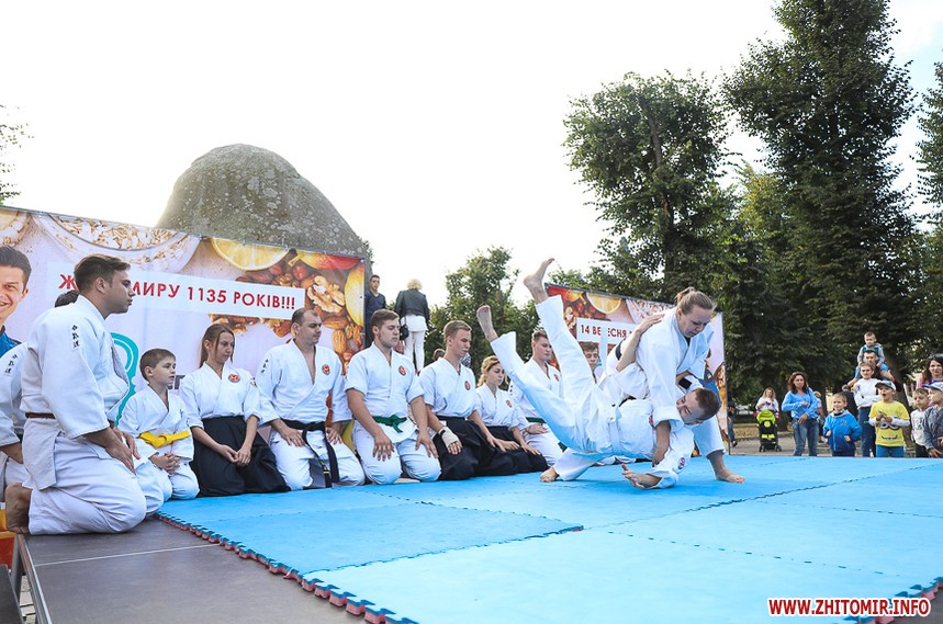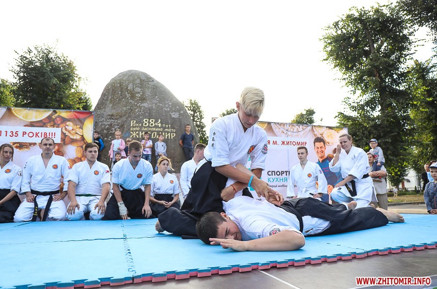 Також на Замковій багато цікавих дитячих та спортивних локацій. Вихованці дитячих спортшкіл Коростишева та Бердичева дають майстер-класи з основ самозахисту. Шоу проходить у рамках святкування 1135-ї річниці від дня заснування Житомира та триватиме до 19.00.