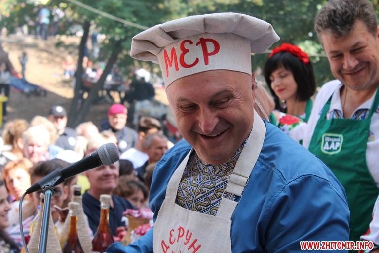 «Цього року фестиваль проходить під девізом «Перевершимо себе» - у кількості учасників, у гостинності і смакоті, толерантності і культурі, гастрономічному колориті. На фестивалі коростенські господині, представники сусідніх районів Житомирщини, кухарі з різних регіонів та інших країн демонструють своє мистецтво приготування дерунів та різних страв з картоплі. Всі бажаючі можуть проголосувати за найсмачніший дерун, який їм сподобається найбільше. Як і кожен рік, у центрі уваги — міський голова Володимир Москаленко, який проводить майстер-клас із приготування дерунів від мера за власним рецептом. Посмакував «мерського» деруна й голова обласної ради Володимир Ширма та відзначив, що «мер Коростеня започаткував гарну традицію – проведення такого фестивалю. Щорічно в цю пору року Коростень стає своєрідною «меккою» для поціновувачів дерунів, а їх випікання власноруч самим міським головою - це вже «родзинка» фестивалю, що створює гарний настрій усім відвідувачам свята, і на цей майстер-клас чекають всі, на нього їдуть звідусіль», - повідомляє обласна рада.