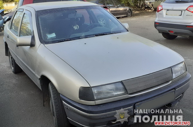 16 вересня до поліції звернувся житель м. Радомишля із повідомленням про незаконне заволодіння його автомобілем. Як розповів 27-річний заявник, близько 14.20 у с. Кочерові він зустрівся з трьома наглядно знайомими, які мали намір придбати його Opel Vectra. Після нетривалої розмови чоловіки не зійшлися у ціні, однак ключі та документи на автомобіль все ж опинилися у покупців. І допоки заявник ходив до магазину, ті поїхали на машині, за словами чоловіка, без його згоди.