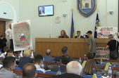 Втім, громадські активісти почали вимагати, щоб депутати розглянули його першим. Через півтори години після початку сесії депутати таки сформували порядок денний і питання про надання дозволу на розроблення технічної документації з землеустрою на земельну ділянку площею 0,3 га на вулиці Подільській, 9-б перенесли на початок засідання.