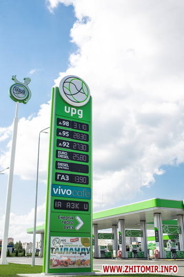 На новому АЗК можна буде заправитися дизелем, бензинами А-92, А-95 і високотехнологічним бензином А-100. Також буде встановлений LPG-модуль. Все пальне, що реалізується у мережі АЗС upg, відповідає стандартам EURO-5. Основними перевагами європального є в п’ять разів менший вміст токсичних речовин, що шкодять довкіллю, вдвічі менша концентрація фактичних смол, котрі впливають на зношування двигуна і утворення нагару, а також в п’ять разів менше сірки, яка з часом призводить до корозії деталей. Окрім того, мережа АЗС upg завжди дбає про екологію, тому новий АЗК у Житомирі буде оснащений сучасними потужними фільтрами, що запобігають шкідливим викидам у атмосферу.