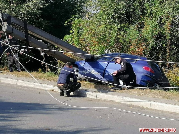 19 вересня близько 15.00 на околиці міста Малин Житомирської області автомобіль Alfa Romeo потрапив у ДТП. Легковик з’їхав з проїжджої частини дороги і протаранив електроопору. В результаті аварії два залізобетонні стовпи впали і «накрили» собою авто.