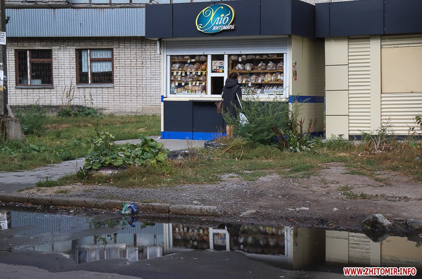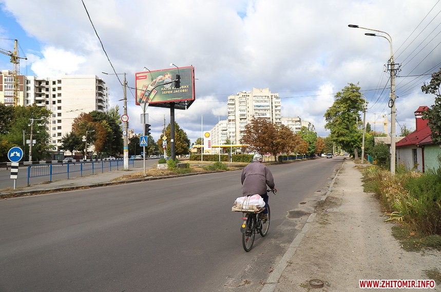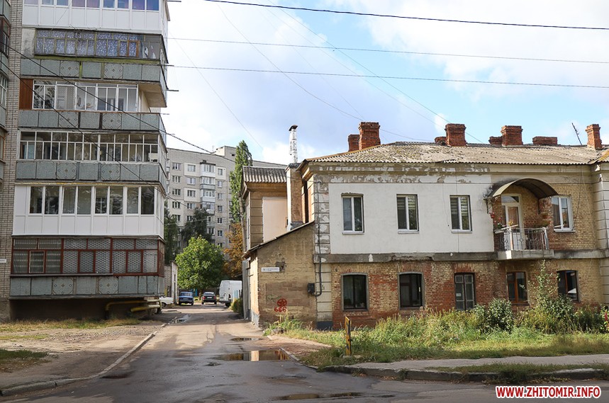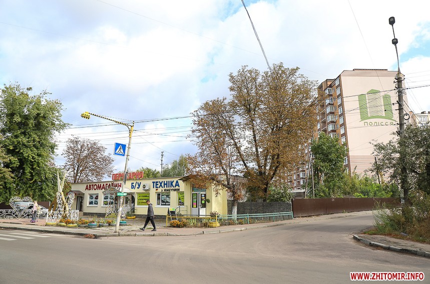 Прохолодного осіннього дня 19 вересня фотокореспондент пройшлася вулицею з фотокамерою. Отже, на початку вулиці — дитяча аптека, де можна було замовити виготовлення ліків за рецептами (зараз на дверях оголошення: Ліки замовляйте в аптеці "Міжлікарняна"), а навпроти — перукарня, біля якої житомирський коваль встановив рекордні 5-метрові ножиці – подарунок дружині до Дня перукаря. Трохи далі – будівництво нової багатоповерхівки та дитсадок №52, який утеплюють з 2015 року.