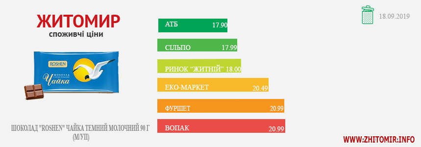 МОНІТОРИНГ ЗДІЙСНЕНО МЕТОДОМ КОНТРОЛЬНОЇ ЗАКУПІВЛІ, У МІСЦЯХ ПРОДАЖУ: AТБ, пр. Миру, 15 А, Ринок "Житній", майдан Житній ринок, Фуршет, вул. Вітрука, 9 а, ЕКО-маркет, вул. Мала Бердичівська, 2/7,Сільпо, майдан Житній ринок, 1,Вопак, вул. Київська, 87