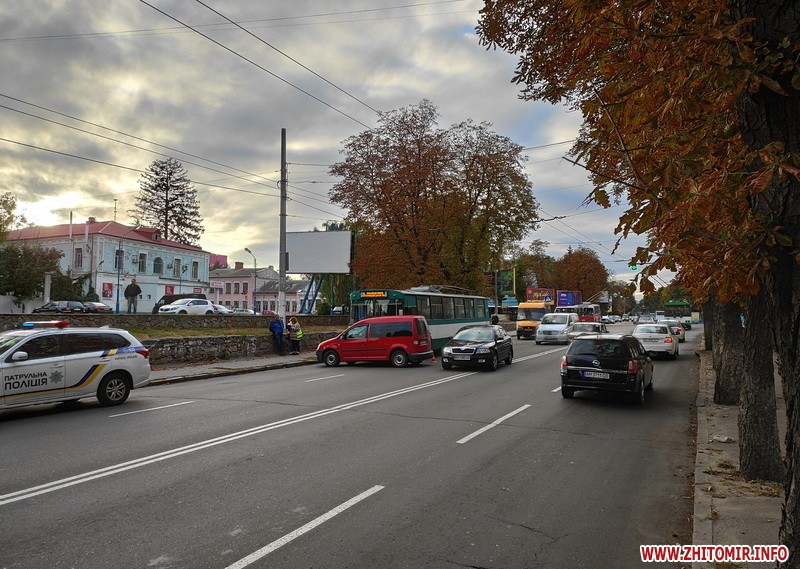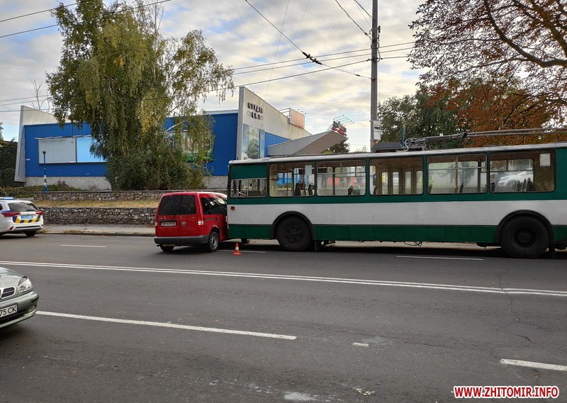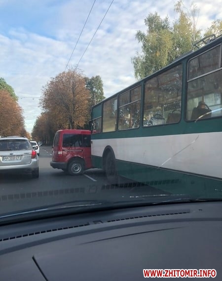 23 вересня у Житомирі на вулиці Великій Бердичівській, неподалік перехрестя з вулицею Жуйка, сталася дорожньо-транспортна пригода за участю тролейбуса.