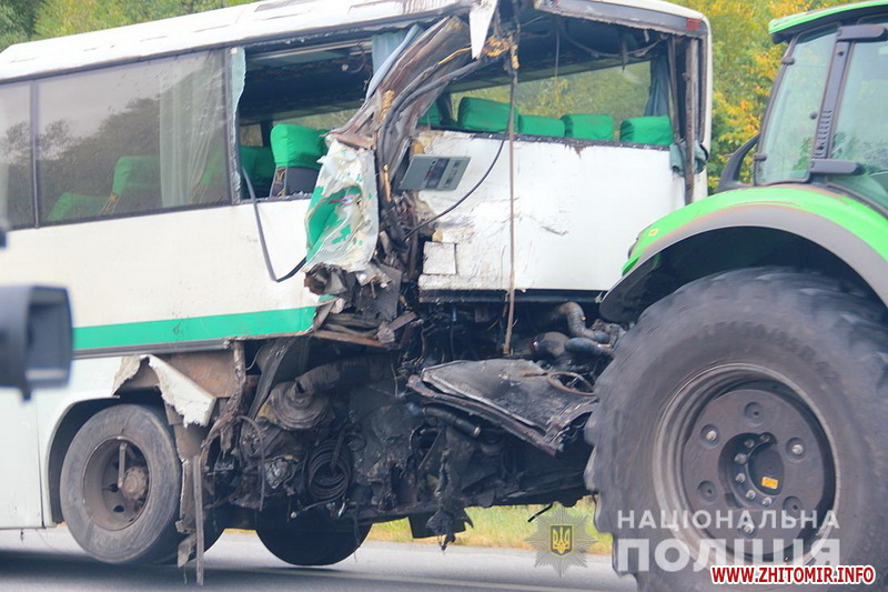 Попередньо встановлено, що 22 вересня близько 22:30 на трасі Київ-Чоп, поблизу с. Великий Молодьків Новоград-Волинського району, керманич DAF, житель Волині, прямуючи у напрямку столиці, не впорався з керуванням та зіткнувся з автобусом сполученням «Яремча-Житомир», що стояв на узбіччі дороги.