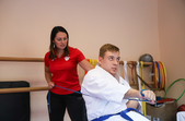 «Данило займається п’ять років. Ілля трохи менше. Данило сам не переміщається, лише на інвалідному візку. Інші з наших спортсменів з інвалідністю можуть переміщатися самостійно, проте в них теж є нюанси з втратою балансу, координацією, вестибулярним апаратом. Якщо говорити про спортсменів з ДЦП, то тут кожен випадок дуже відрізняється. До кожного потрібен власний підхід. Іллі Андрєєву потрібно стабілізувати рівновагу, увагу, синхронізувати рухи рук та ніг, щоб все було чітко та стабільно. Якщо говорити про Данила, то в нього проблемний плечовий пояс, одна рука працює не так чітко, як інша. Потрібно підганяти одну руку під іншу, щоб картинка, яку оцінюють судді на змаганнях виглядала більш чітко, жорстко, більш довго. Тобто, коли ми працюємо на змаганнях, то картинка, кінцевий результат має виходити, як у художній гімнастиці. Тому ми перед змаганнями вивчаємо конкурентів, адже наші спортсмени змагаються не лише на чемпіонатах області, України, але й на міжнародних турнірах. Данило брав участь у складі збірної України у чемпіонатах світу та Європи. Головні конкуренти Данила – переважно іспанці, іранці та єгиптяни. Нам важко змагатися з ними, тому що спортсмени у розділі «візочники» зібрані зовсім з різними нозологіями. Це як спортсмени-спинальники, спортсмени з ампутаціями, з ДЦП. І спортсменам з ДЦП завжди набагато важче. У них завжди складніше працює одна кінцівка. Нема рівного положення корпусу, є перекіс, рухи набагато повільніші та дестабілізованіші», - розповідає керівник та головний тренер спортивного клубу карате «Додзе» Анна Яцкова.