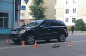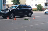 На фото, наданих патрульною поліцією, – автомобіль марки Mercedes і дитячий самокат на асфальті. З фото видно, що ДТП трапилася біля бібліотеки університету