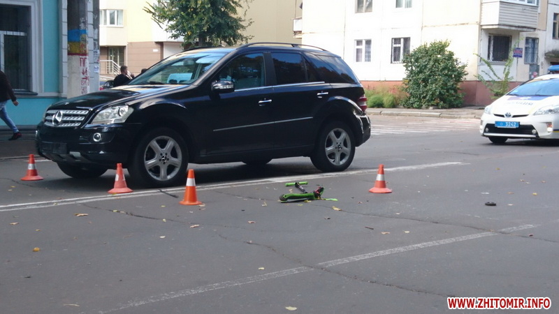 «О 10:00 год. надійшов виклик про те, що на вулиці Великій Бердичівській, 45, біля університету імені Франка, автомобіль збив дитину. З’ясувалося, що в ДТП потрапила ціла сім’я: дитину чотирьох років забрали у станишівську лікарню з попереднім діагнозом «струс головного мозку», у тата, за попередніми відомостями, теж струс мозку, його госпіталізували до лікарні №2. Мама у шоковому стані. Каже, що не пам’ятає, як усе сталося. На місці працюють правоохоронці», – повідомила старший інспектор пресслужби патрульної поліції Житомирської області Тетяна Носадчук. Вона також уточнила, що люди переходили дорогу по нерегульованому пішохідному переходу.