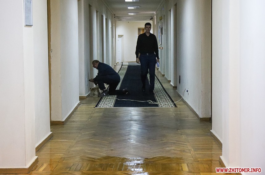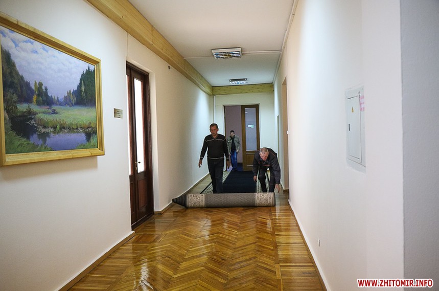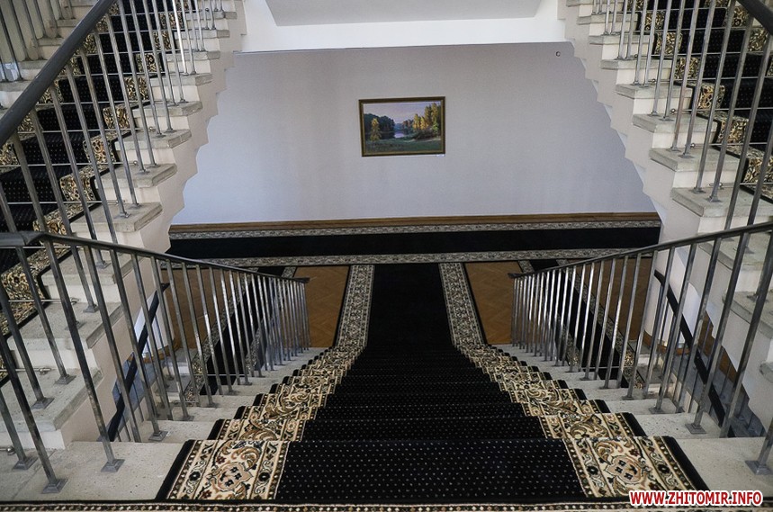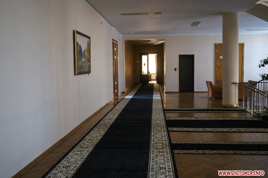 В коридорах адмінприміщення постелили зелені килимові доріжки, які у вересні купило комунальне підприємство по експлуатації адмінбудинків Житомирської обласної ради: за 669 кв.м. доріжки заплатили 199 тисяч гривень, поставити їх замовнику мали до 1 жовтня 2019 року.