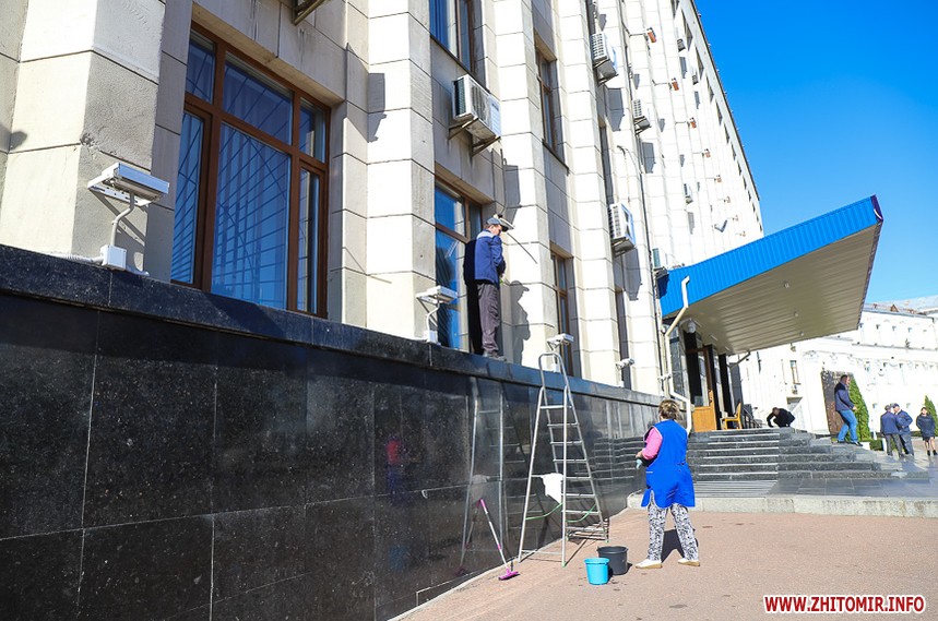 Приміщення на майдані Корольова, де розміщуються Житомирська облдержадміністрація та обласна рада, 2 жовтня продовжують активно готувати до ІІ Форуму регіонів, який має проходити у Житомирі 3-4 жовтня за участю президентів України та Білорусі.