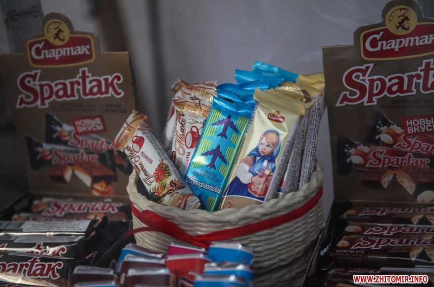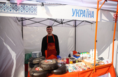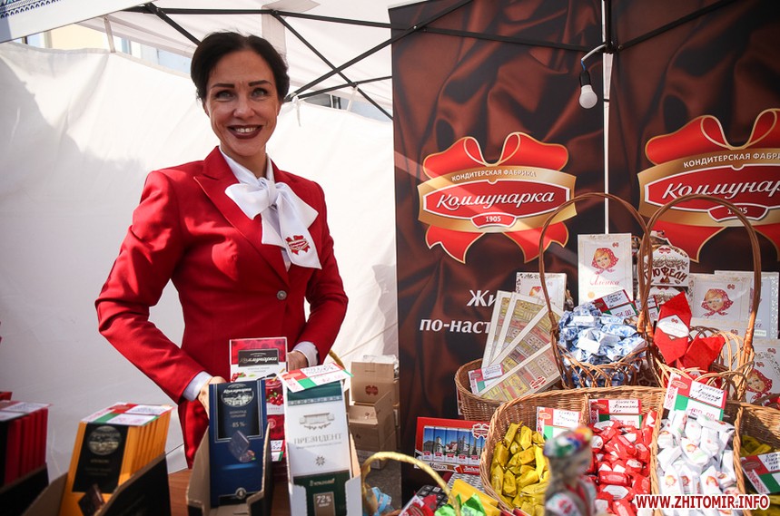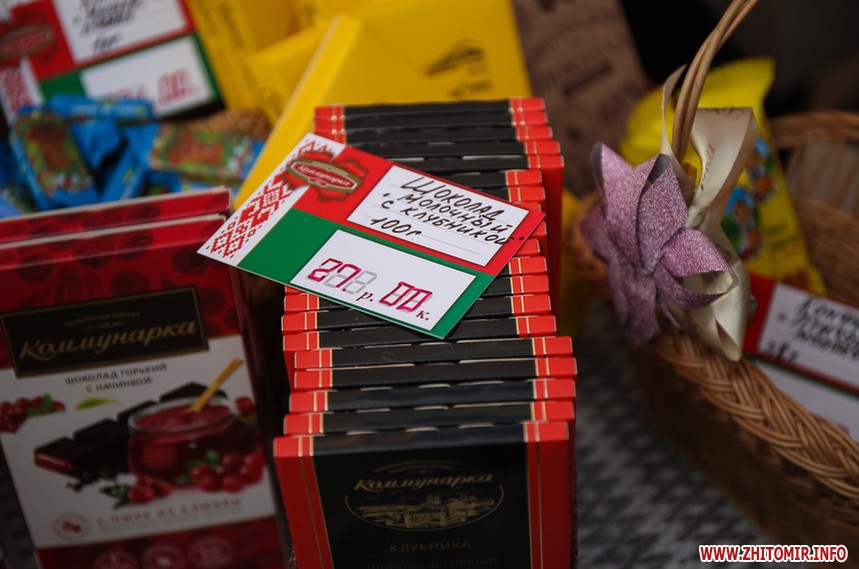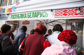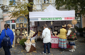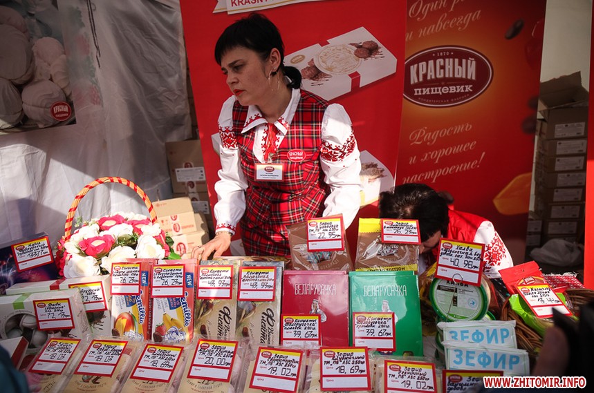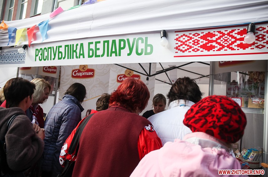 А на пішохідній вулиці Михайлівській розгорнувся ярмарок продукції та виробів декоративно-прикладного мистецтва України і Білорусі. Наша фотокореспондента, яка вже побувала на ярмарку, зауважує, що до ятки з білоруськими солодощами вишикувалась черга. Серед охочих накупити привезених солодких смаколиків переважно люди старшого віку.