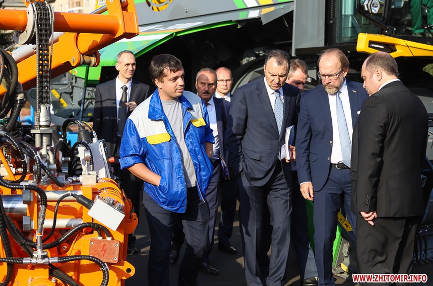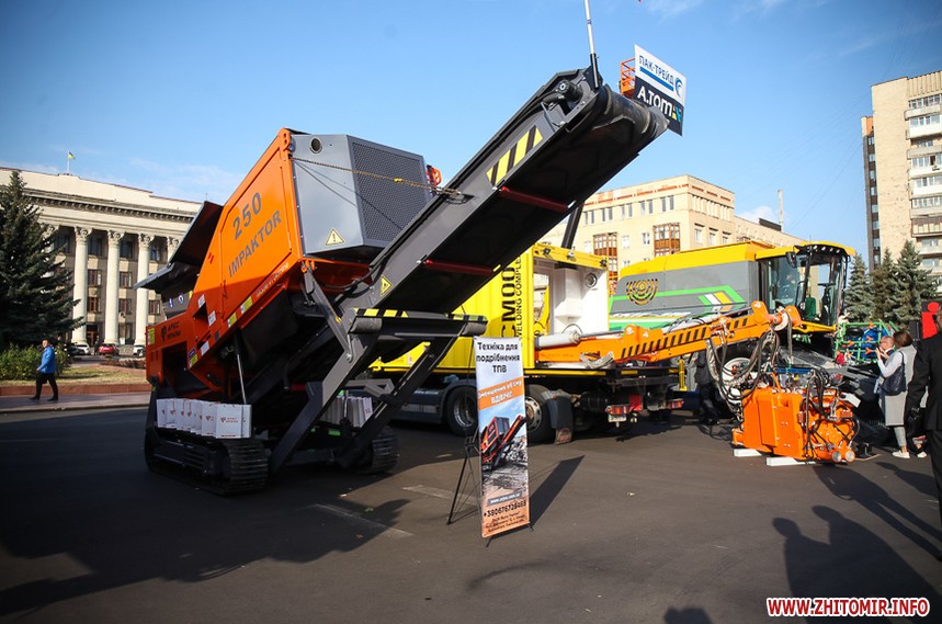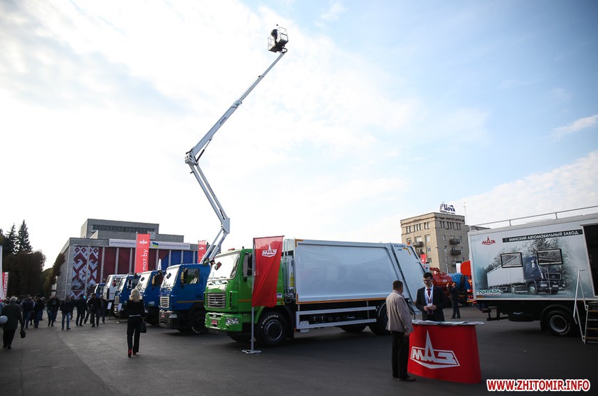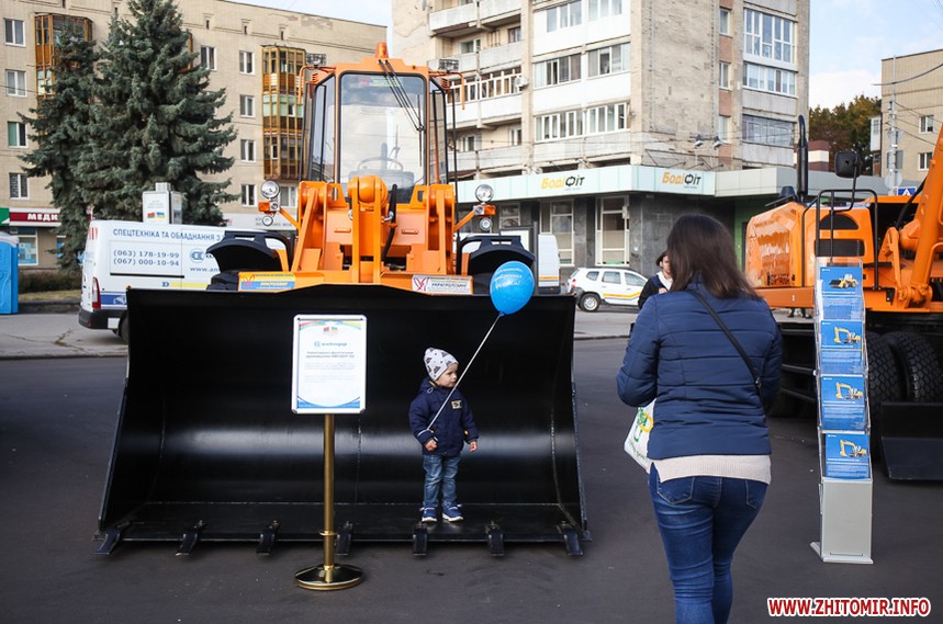 Трактори, автобуси, екскаватори, гігантські вантажівки і комбайни – 3 жовтня на житомирському майдані Соборному проходить виставка великогабаритної техніки у рамках Другого форуму регіонів України та Республіки Білорусь.