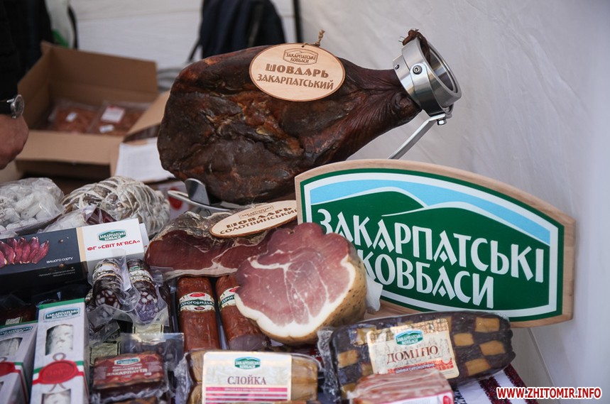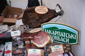 пропонують продавці у рундуку з українськими м’ясними виробами.