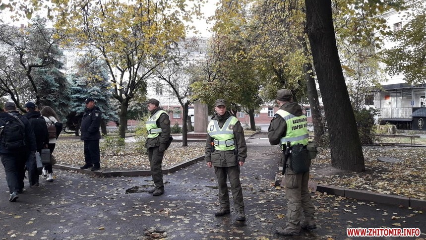Поліція та нацгвардійці працюють і на головних вулицях міста: Київській та Великій Бердичівській, та на майдані Корольова, біля будівлі Житомирської облдержадміністрації.