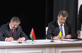 Після виступів президентів на сцені театру голови регіонів та представники урядів двох країн підписали білорусько-українські двосторонні документи.