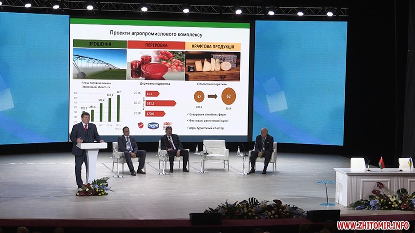 Як повідомляв Житомир.info, у перший день Другого Форуму регіонів України та Республіки Білорусь 3 жовтня в міській раді відбулося VIII засідання українсько-білоруської консультативної ради щодо ділової співпраці. Засідання завершилось підписанням ділових контрактів між представники українських та білоруських компаній. Зокрема, Житомирське ТТУ підписало угоду з білоруським виробником тролейбусів «Белкомунмаш» про закупівлю нового транспорту для міста – 49 тролейбусів. В ОДА відбулася зустріч українських голів облдержадміністрацій та білоруських губернаторів. На майдані Соборному відкрили виставку великогабаритної техніки, а на Михайлівські розгорнувся ярмарок продукції та виробів декоративно-прикладного мистецтва України і Білорусі. Ввечері для учасників Форуму організували культурну програму.