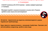 У період з 15 по 18 жовтня буде здійснюватися перекладка трубопроводу на вул. Чуднівська. 18 жовтня нова ділянка трубопроводу буде введена в експлуатацію. Унаслідок проведення робіт з підключення новопрокладеної мережі буде відсутнє водопостачання на Корбутівці. Тож у водоканалі також просять мешканців вказаного району зробити запас води на добу.