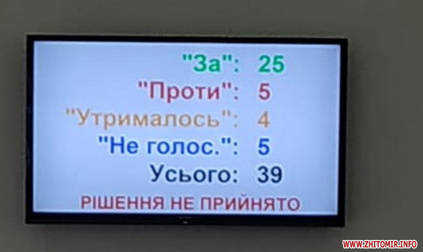 Депутати Житомирської обласної ради не підтримали звернення до керівництва держави щодо недопущення імплементації «формули Штайнмаєра» та закріплення на законодавчому рівні особливого статусу окупованих територій Донецької та Луганської областей.