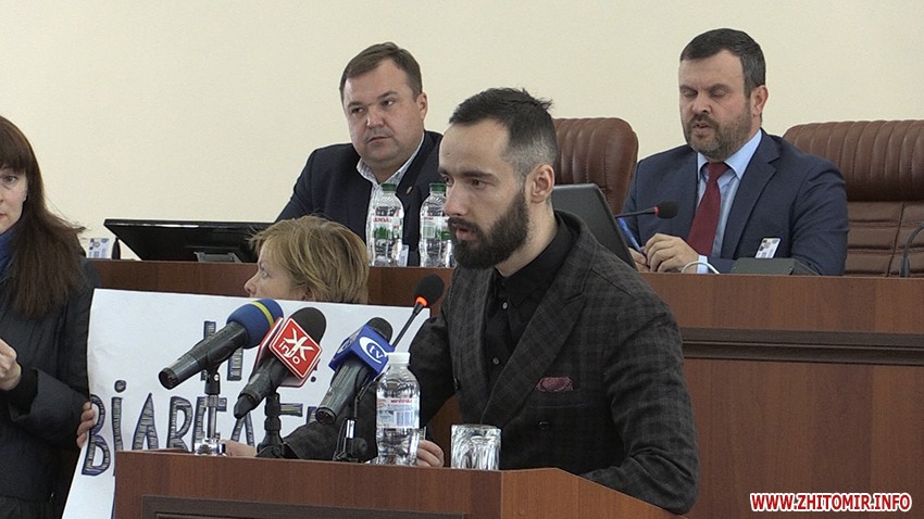 Народний депутат заявив, що мораторій на землю буде знято попри не залежно від звернення депутатів Житомирської обласної ради. На таку заяву присутні відреагували вигуками «Ганьба!».
