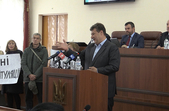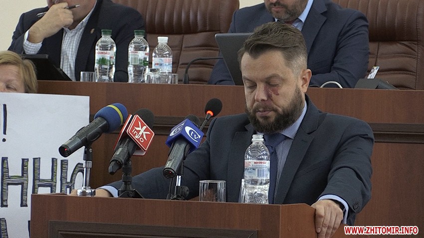 Під час цієї промови хтось із громадських активістів спробував висловити репліку. Голова Житомирської ОДА гримнув на людей із плакатами й вигукнув: «Помовчіть, будь ласка».