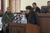 «Давайте не допустимо федералізації, давайте не допустимо того, щоб вибори були фейком, як в Криму. Справедливо висловився Сидір Кізін, що ніхто притомний не піде туди депутатом балотуватися. Зараз у нас є унітарна держава. Від того, що порушені кордони, які були встановлені в 1945 році, накладені санкції. Якщо відбудеться федералізація – це змінить світовий порядок, це потягне за собою події як політичні, так і економічні. І Україна від цього не виграє. Я хочу, щоб ми всі відчули, я також звертаюсь до пана Володимира (Ширми, голови облради - ред.) та пана Віталія (Бунечка, голови ОДА - ред.), які зараз керують нашою областю, щоб вони теж відчули і зрозуміли свою відповідальність за долю України», - звернулась до присутніх громадська активістка Вікторія Артеменко.