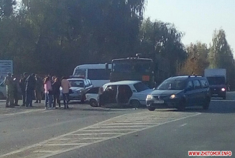 «Біля 8-ї години 40 хвилин на перехресті вулиць Шевченка та Коростенської зіткнувся військовий "КАМАЗ" з "ВАЗ". КАМАЗ рухався в зворотньому напрямку по "шепетівській трасі". В центрі перехрестя відбулося зіткнення автомобілів. На місце дорожньо-транспортної пригоди приїхали поліцейські та дві карети швидкої допомоги» - розповів очевидець пригоди інтернет-виданню.