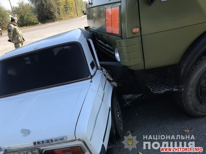 8 жовтня в місті Новограді-Волинському сталася ДТП за участю військової вантажівки та легковика.