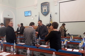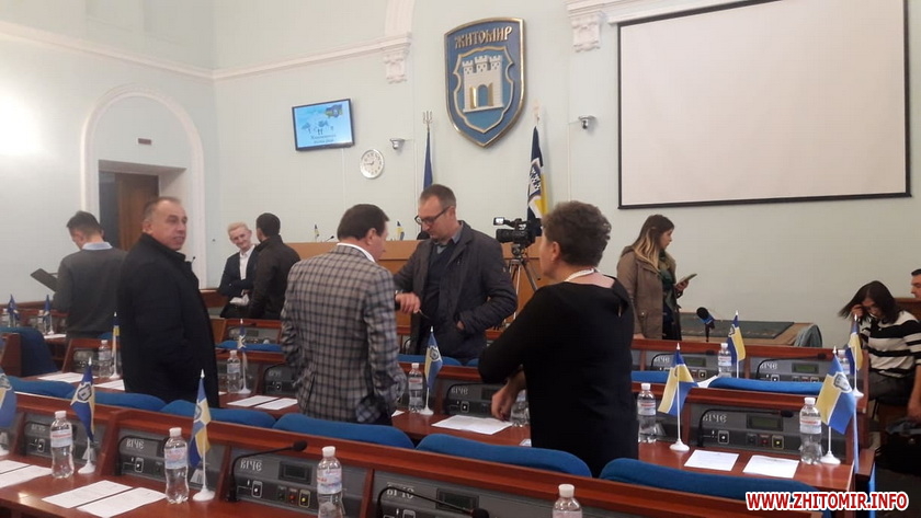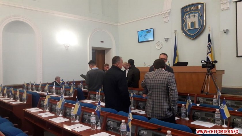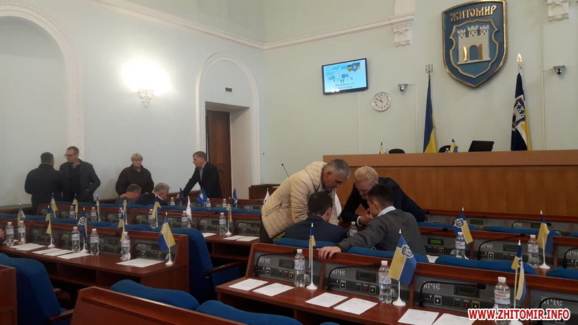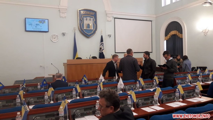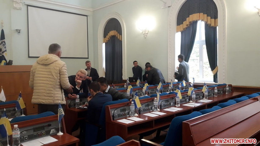 Позачергова сесія Житомирської міської ради, яка 11 жовтня о 9:00 мала почати свою роботу, станом на 9:30 ще не розпочалася.