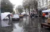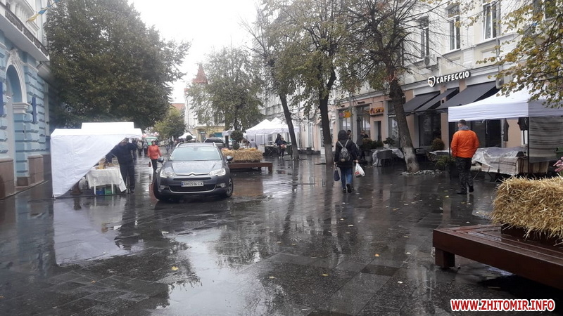 Вранці 11 жовтня на пішохідній вулиці Михайлівській у Житомирі їздять легкові і вантажні автомобілі, а підприємці розгортають торгові намети – так розпочинається Покровський ярмарок.