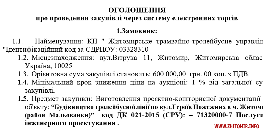 Оголошення опубліковане на ресурсі ProZorro 10 жовтня. Очікувана вартість закупівлі становить 600 тис. грн.