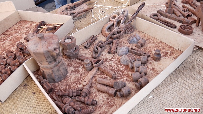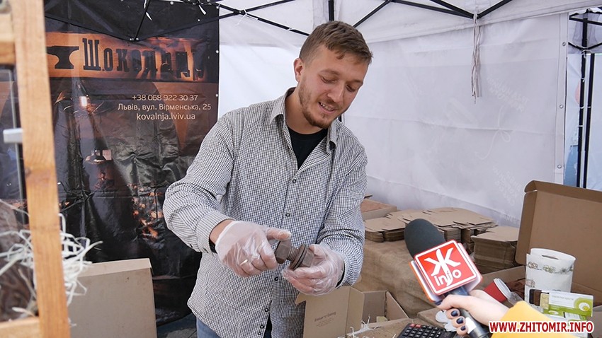 «Раді вам представити львівський бренд «Ковальня шоколаду». Це шоколадні вироби у незвичайних формах. Наприклад, це може бути шоколадний болт, який взаємодіє з гайкою, або автентична кавоварка. Ціни у нас починаються від 10 до 600 гривень», – відповідає продавець Володимир.