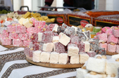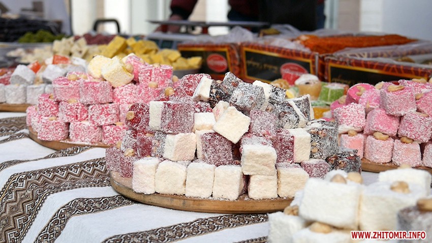 «Східні турецькі солодощі: рахат-лукум, пахлава медова, халва, щербет. Щось 20 гривень за 100 грамів, є 50 гривень за 100 грамів. До прикладу, щербет у нас коштує 30 грн, є з сухофруктів цукерки за 35 грн за 100 грамів, пахлава також 35 грн за 100 грамів», – каже продавець Юрій.