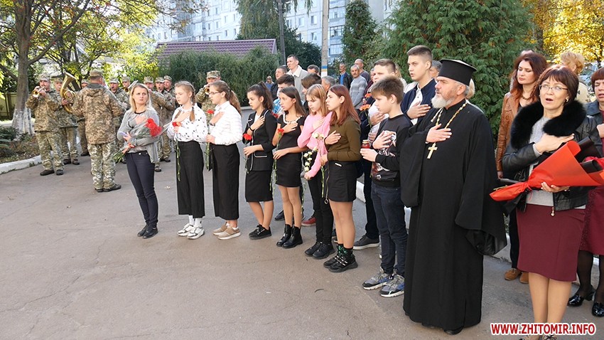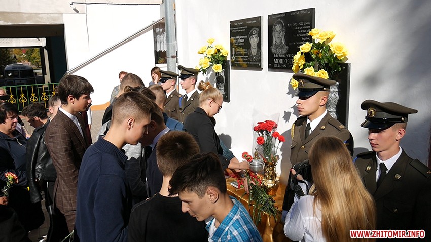 15 жовтня на фасаді Житомирського міського колегіуму встановили пам'ятну дошку померлому учаснику АТО, військовослужбовцю 24-ї бригади Євгенію Мошківському. Вшанувати пам'ять померлого героя прийшли родичі, однокласники та військові.