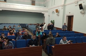 Слухання розпочалися із запізненням майже на годину – чимало часу забрав процес реєстрації учасників. Врешті, зареєструвалося 34 особи, але право голосу мають 30: голосувати можуть лише ті, хто пред'явив документ, який підтверджує місце проживання.