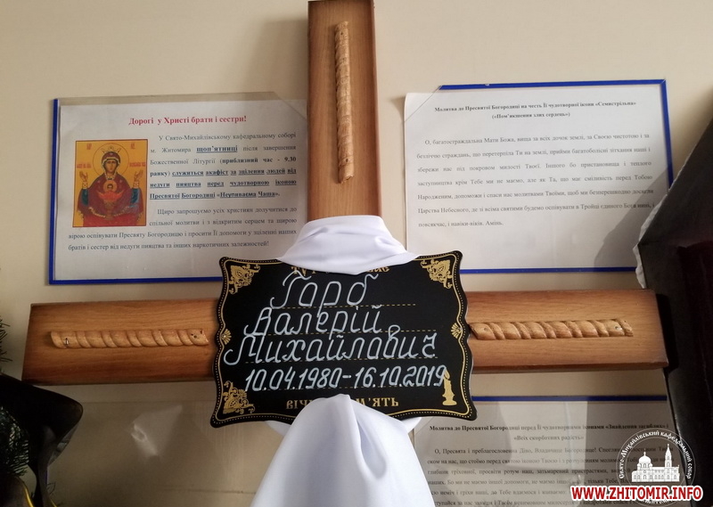 У пресслужбі собору нагадують, що депутат Житомирської міської ради сьомого скликання Горб Валерій Михайлович загинув 16 жовтня за трагічних обставин.