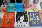 «Ми приїхали до вас з Києва. Називаємось видавничий центр «Академія». Ми починали з навчальних видань для студентів, це наша серія «Альма-матер». Однин з найвідоміших посібників – «Історія України» О. Д. Бойко. Зараз у нас є напрямок книжок про і для підлітків сучасних українських авторів про їхнє життя і проблеми, які їх турбують. Також у нас є художня література для дорослих та дітей», – розповідає представниця видавничого центру «Академія» Альона Бойко.