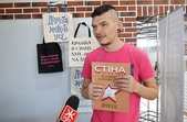 «Я доброволець АТО з Полтави, співпрацюю з житомирським видавництвом «Бук-друк», тому приїхав на книжковий форум. Тут я презентую свій перший в Україні антивоєнний роман, що називається «Цуцик». Реальні події, але від імені собачки-дворняжки, погляд на людину зі сторони», – демонструє свою книгу письменник Віталій Запека.