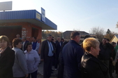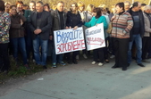 Близько сотні людей з плакатами «Вимагаємо зарплату», «Де наші відпускні?», «Віддайте зароблене», «Вчителі теж люди», «Мельник, ми хочемо жити, а не виживати» (Петро Мельник – голова Лугинської ОТГ) прибули на зупинку «Глухова» та ходять по пішохідному переходу. На дорозі затори, прибула поліція.