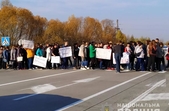Зазначається, що поліцейські забезпечують безпеку дорожнього руху та проводять з учасниками акції роз’яснювальну роботу щодо відповідальності за блокування транспортних комунікацій.