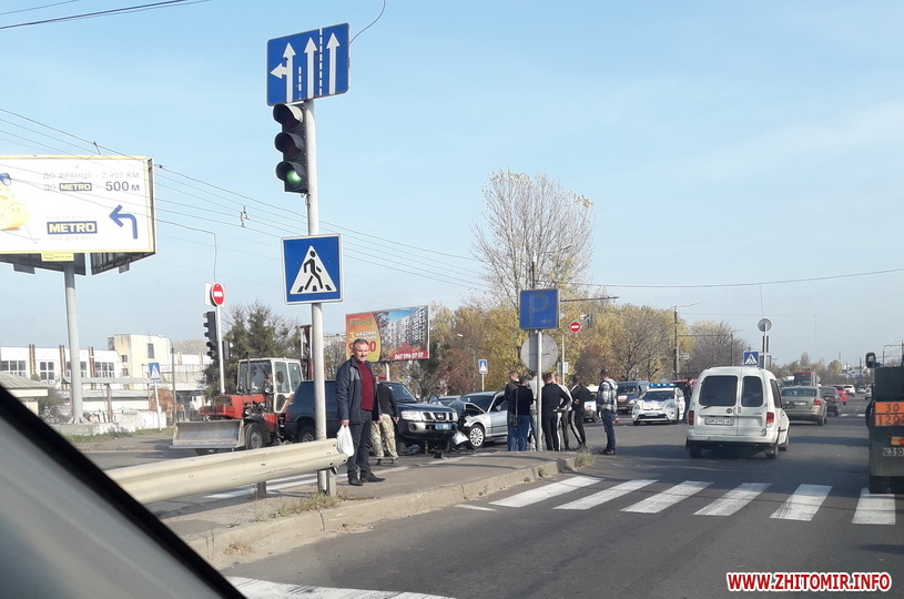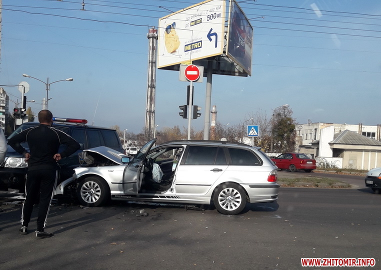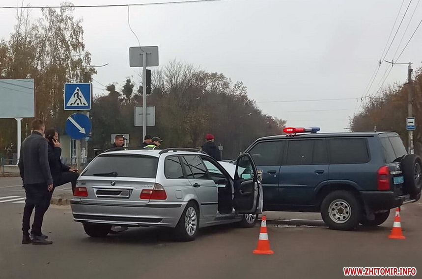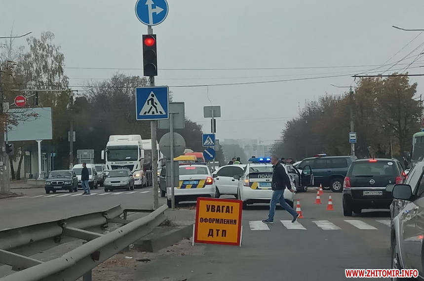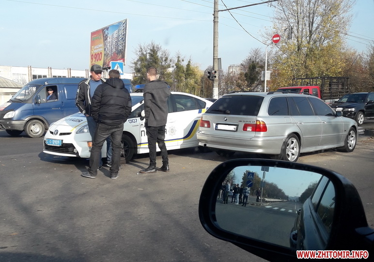 21 жовтня біля ЕКО-маркету на проспекті Незалежності в Житомирі, біля перехрестя з вулицею Отаманів Соколовських, у ДТП потрапив автомобіль поліції.