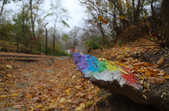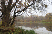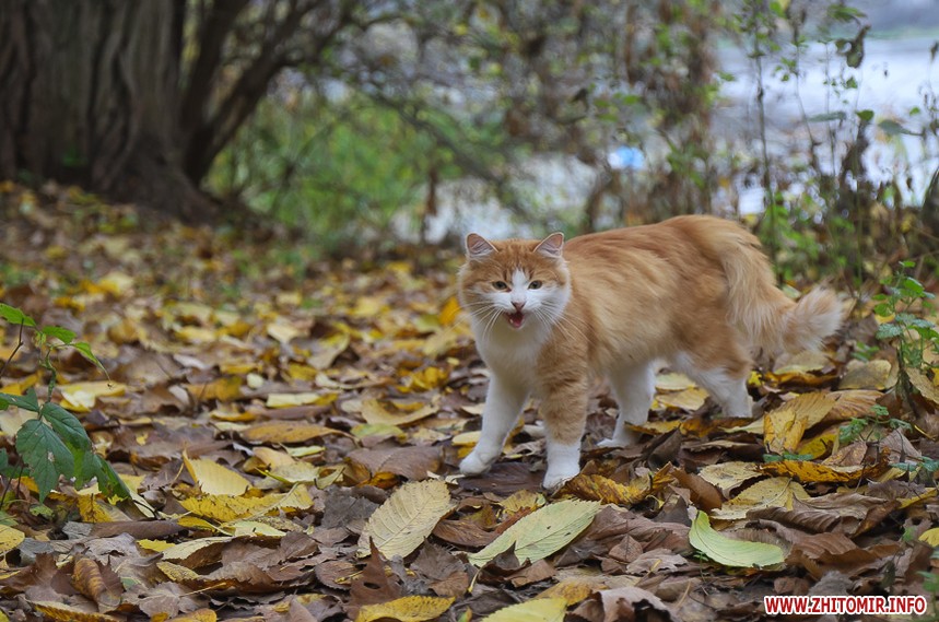 Біля річок туман особливо густий. Погляд вихоплює кольорове листя на гілках і на землі, райдужне графіті, кущі хризантем. Ще цвітуть запізнілі троянди. Важко не помітити сміття, залишене байдужими відпочивальниками. На річці поважно плаває качине сімейство, на дерево поодаль видерся і чогось вичікує сірий кіт.