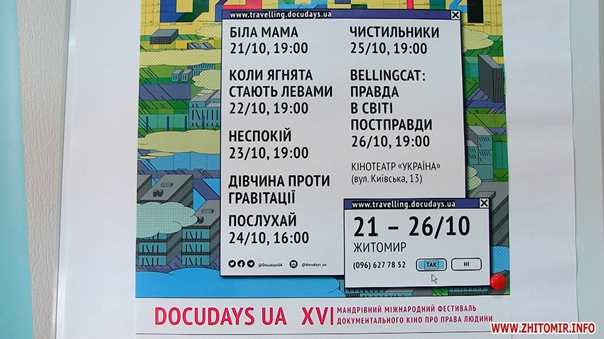 Житомирян запрошують на перегляд документально кіно щодня на 7 годину вечора, виключенням є четвер, коли показ розпочнеться о 4 годині.