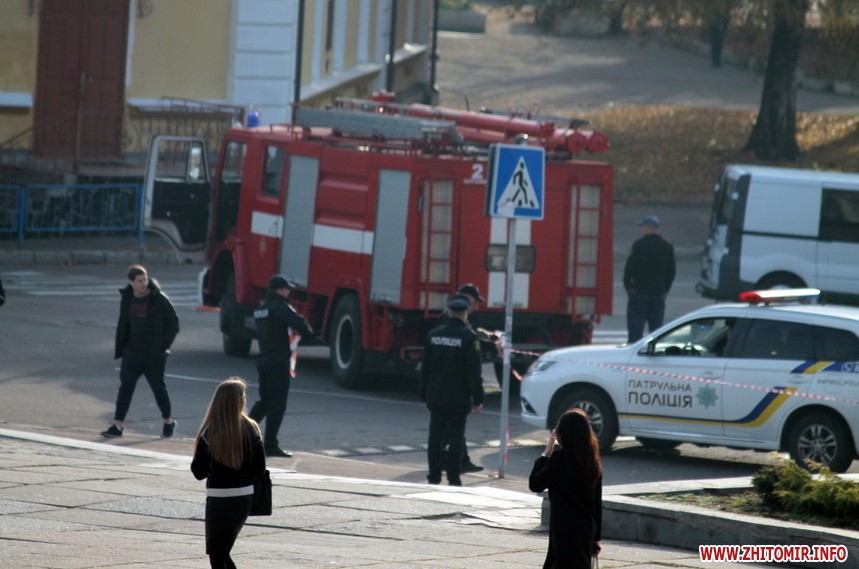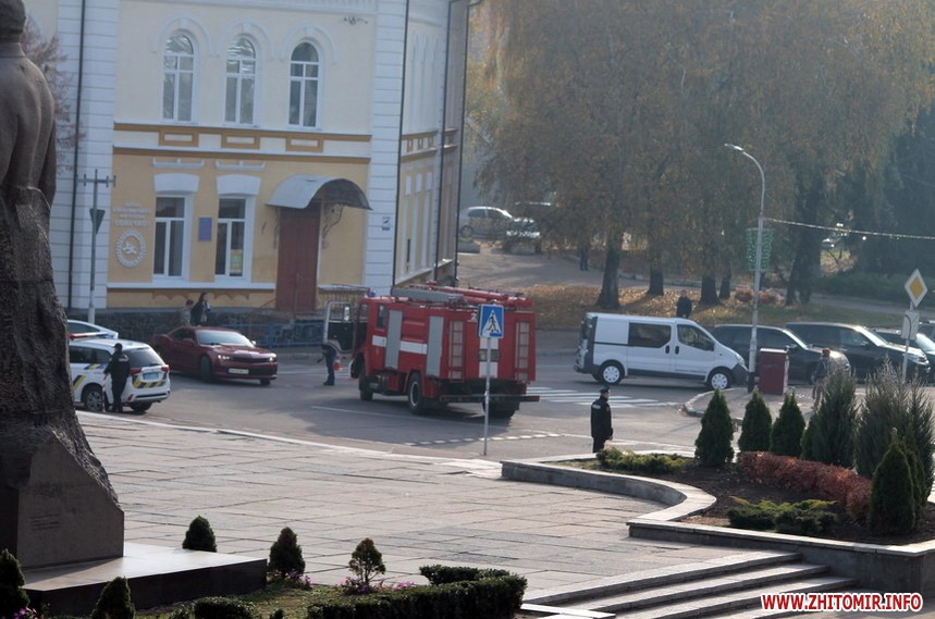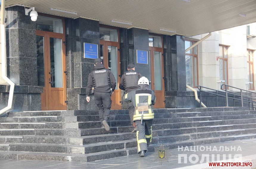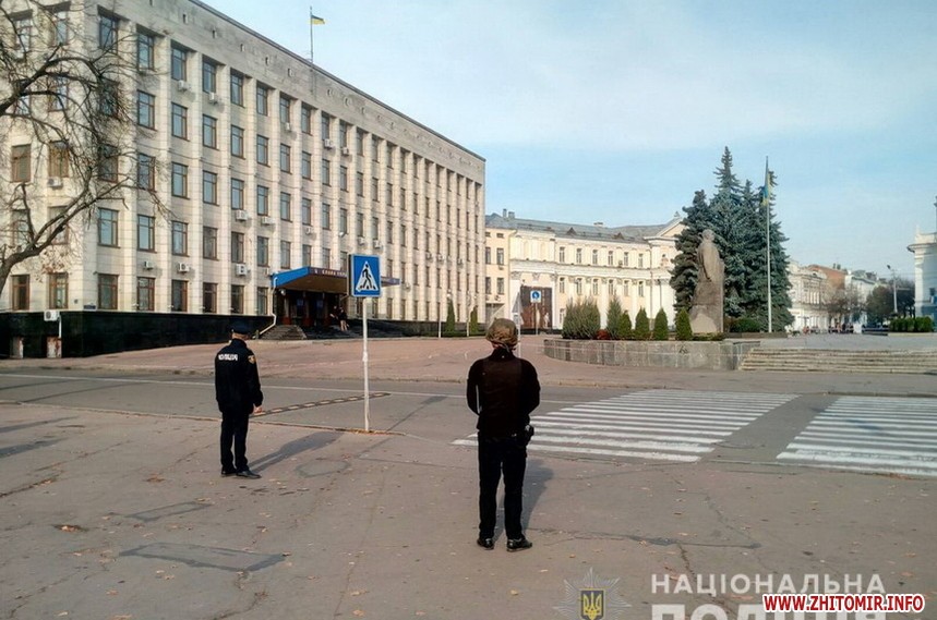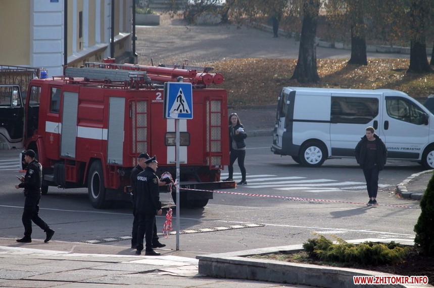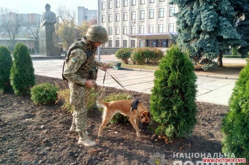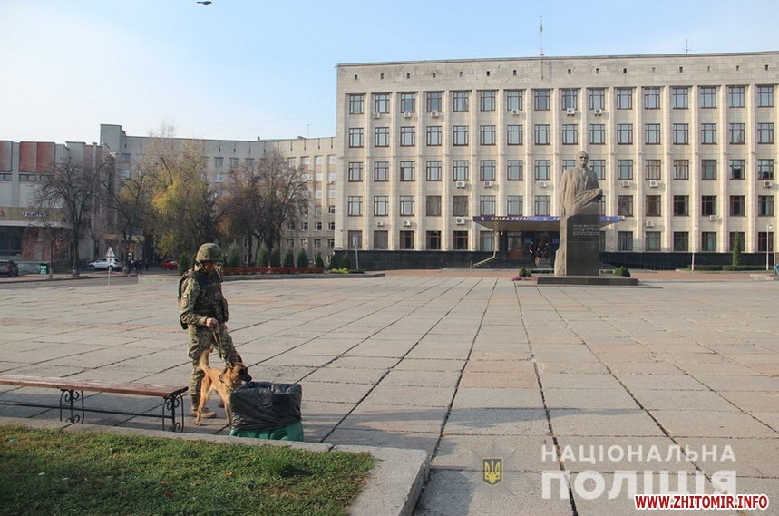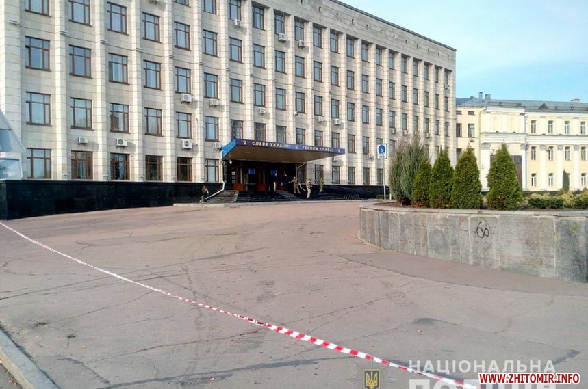 За повідомленням відділу комунікації поліції Житомирської області, повідомлення про вибухівку біля приміщення облдержадміністрації поліція отримала зранку 22 жовтня.