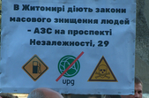 Нагадаємо, 22 жовтня 2019 року, рівно через місяць після попереднього перекриття, кілька десятків людей вийшли на житомирський проспект Незалежності. Вони ходили по пішохідному переходу з плакатами та дитячими візками, виступаючи проти будівництва автозаправки на просп. Незалежності, 29.