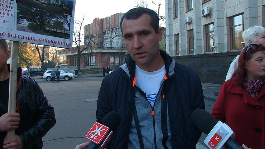 Згодом приїхав начальник управління Державної архітектурно-будівельної інспекції Житомирської області Сергій Сербін. Учасник акції запевнили його, що документи на будівництво отримані незаконним шляхом.