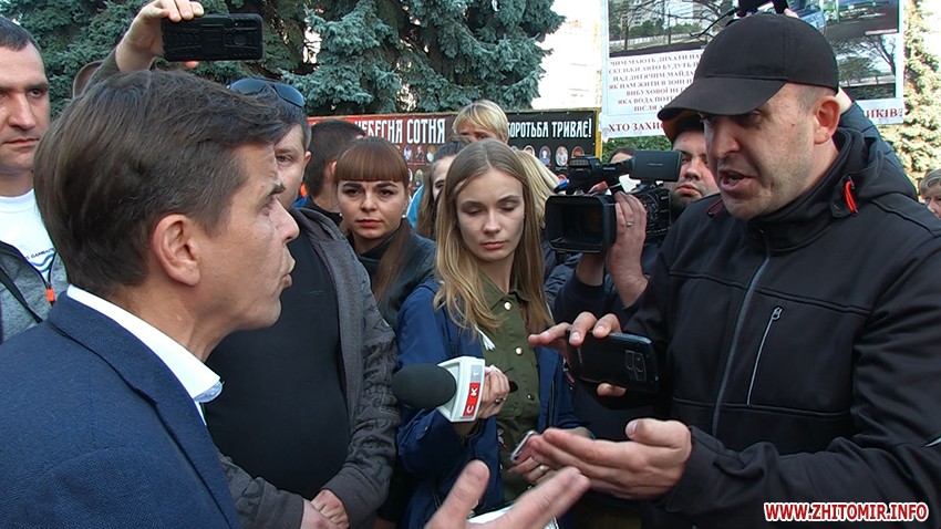До мітингувальників вийшли голова ОДА Віталій Бунечко, народний депутат України (по 62-му Житомирському округу) Ігор Герасименко та заступників Житомирського міського голови Серій Кондратюк.