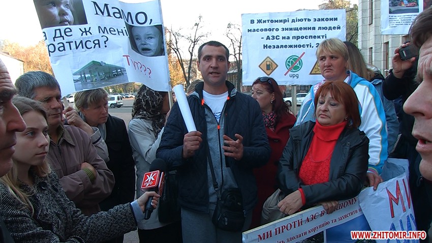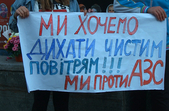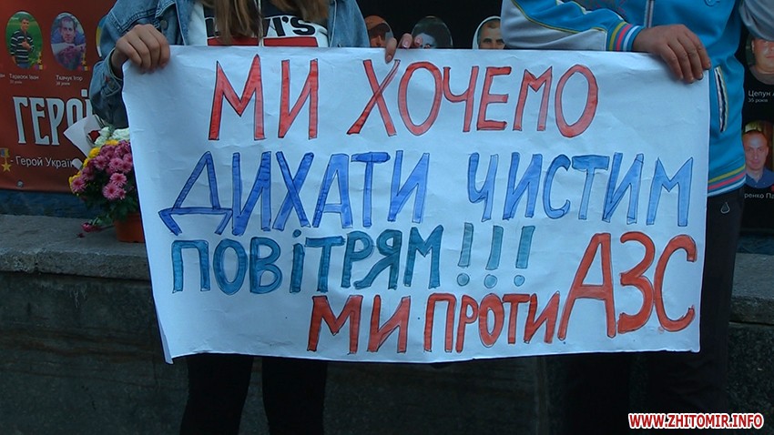 Люди стояли з плакатами «Ми хочемо дихати чистим повітрям!!!», «Ми проти АЗС у нашому дворі!», «Мамо, а де мені гратися?» та вимагали, аби до них вийшли представники влади.